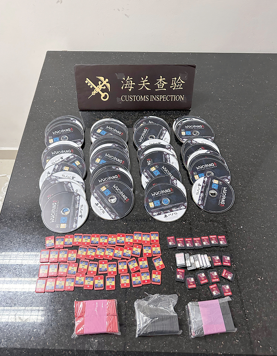 Zhuhai’s Gongbei Customs announced in a statement yesterday that its officers nabbed two smugglers attempting to smuggle 644 game discs and game cards into the mainland.