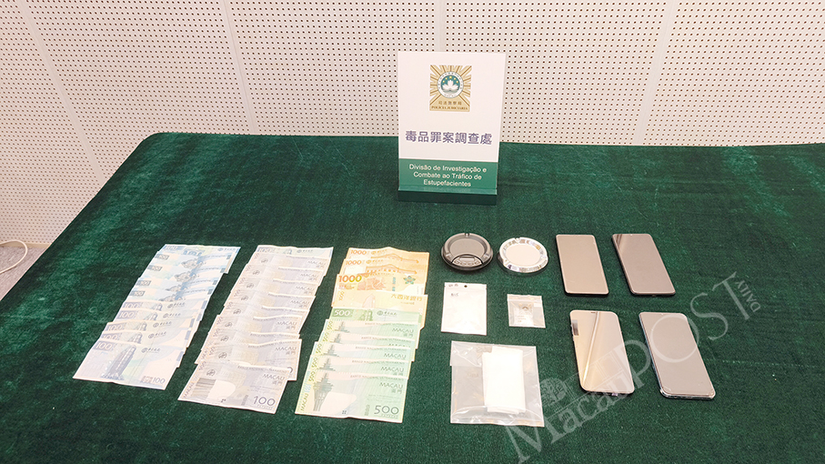 On Wednesday afternoon, Chao said, PJ officers intercepted Padillo in a street also near the Praia do Manduco neighbourhood and seized a bag containing 2.2 grammes of ice from him. The police later searched his nearby home where they seized an electronic scale and drug packaging tools, as well as 9,000 patacas in cash that the police believed he had earned from selling drugs.