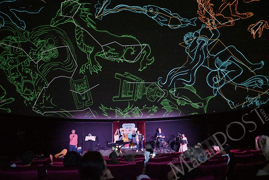 The badges and stickers were showcased at yesterday’s ceremony at the 127-seat Planetarium, where the “Starry Night Charity Music Performance” by the local Emotional Music Together band featuring Zito Estorinho on drums also took place. The musicians played eight songs under stars and the vast galaxy shown through projections on the Planetarium’s semi-dome screen.