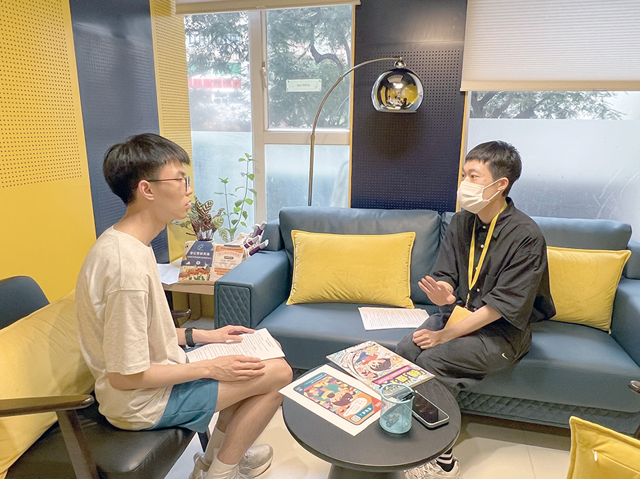 A student from Pui Ching Middle School is interviewing counsellor Jacob Choi Chan Hong at the Sheng Kung Hui Gambling Counseling and Family Wellness Centre in May this year.