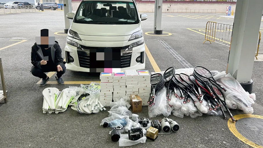 According to the statement, customs officers seized 40 “APPLE” Ipads, 84 “WILSON” branded racquets, 39 “YONEX” branded racquets, 11 cameras and seven lenses from a dual-plate vehicle during an inspection of the car at the Gongbei Port inbound cargo inspection lane.