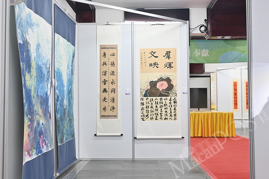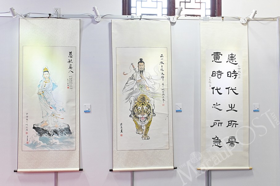 A variety of artworks are being jointly presented by six religious communities in Macau, featuring works ranging from various styles of paintings and calligraphy to sculptures, all displayed together in harmony at Kun Iam Temple.