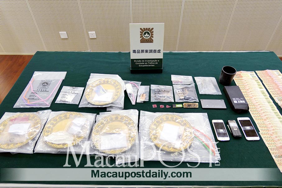 This photo taken yesterday at the Judiciary Police (PJ) headquarters shows the drugs seized in the karaoke bar in Nape.