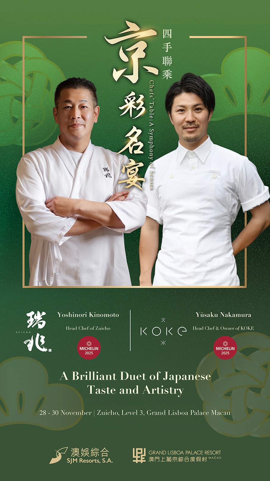 SJM Resorts said in a statement earlier this week that its Chef’s Table: A Symphony of Senses series - Zuicho x KOKE is slated to take place from November 28 to 30 at THE KARL LAGERFELD MACAU, bringing together two MICHELIN-starred Japanese restaurants for the theme “A Brilliant Duet of Japanese Taste and Artistry”.
