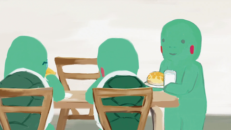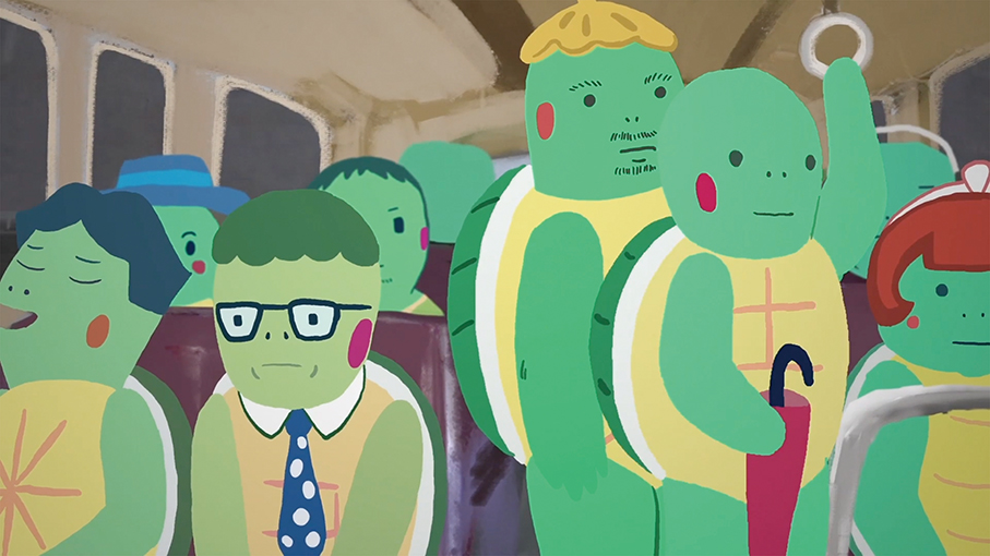 In the story, the terrapin is born without a shell and is rejected by others of his kind. Attempting to fit in, he disguises himself with a shell, only to discover during a bus accident that his difference allows him to help others. The moment becomes a turning point: the character no longer needs to hide his imperfection and instead carries objects meaningful to him, from childhood memories to Macau street signs, turning vulnerability into possibility.
