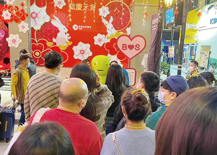 This 2023 photo downloaded from Mung Animation’s Instagram page yesterday shows pedestrians posing for photos with a life-size statue of Ho Sio Chong in Avenida de Almeida Ribeiro.