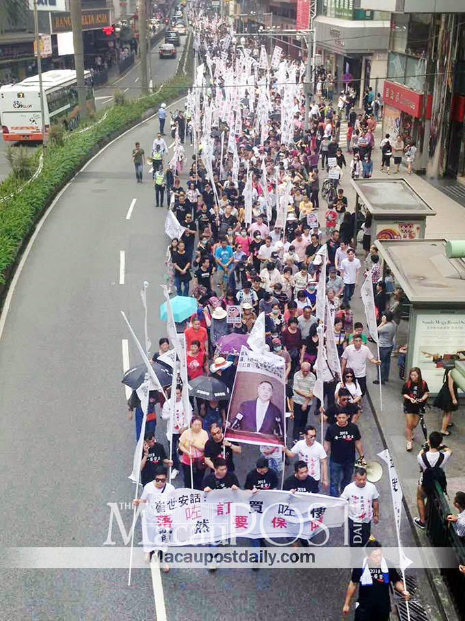 According to the Public Security Police (PSP), about 2,600 people participated in the various protest marches.Among the 2,600 protesters, about 2,000 were from the Pearl Horizon Condominium Owners United Association, according to local Chinese-language media reports.