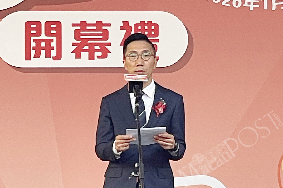 Economic and Technological Development Bureau (DSEDT) Director Yau Yun Wah addresses yesterday’s opening ceremony in Iao Hon Market Park.