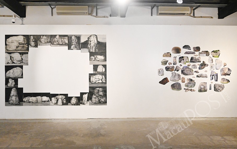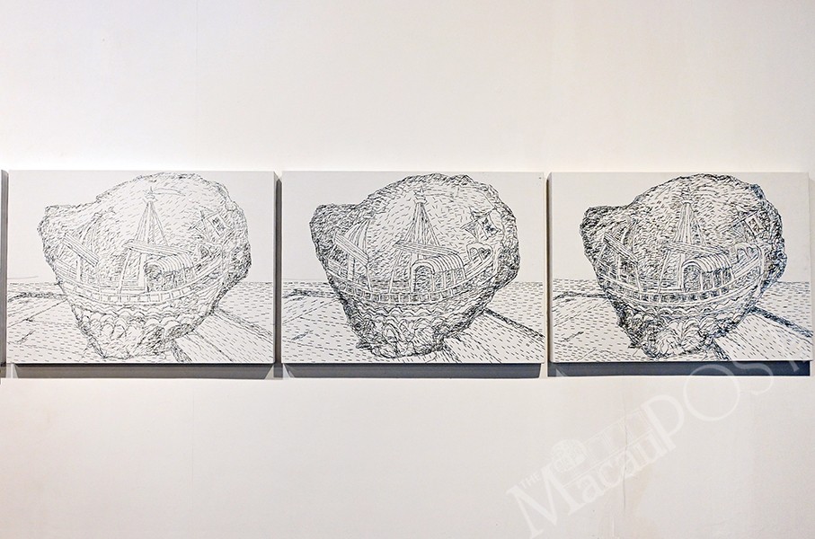 In the exhibition “Seak Kam Tong: Yuan Zeqiang”, Yuan looks at the stories behind stones, along with the narratives and diverse cultures that they hold in the city. “This shared material seemingly reflects the collisions and fusion of diverse cultures in Macau. The ubiquity of stone in the city’s daily life is strikingly vivid”, noted Yuan in a statement displayed at the venue, adding that he felt “compelled to explore the deeper significance of the stone”, with the exhibition featuring installations, video and pieces created using staples among the artworks.