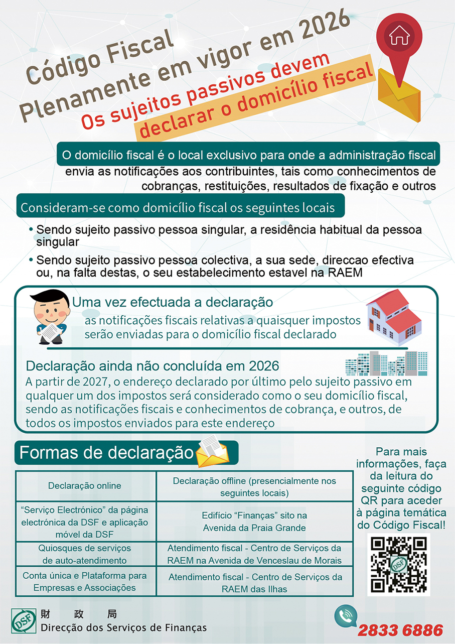 For taxpayers, according to the statement, their habitual residence is recognised as the tax domicile. For corporate taxpayers, their registered office, actual place of management, or in the absence of these, the seat of their permanent establishment in Macau is considered the tax domicile, the statement said.