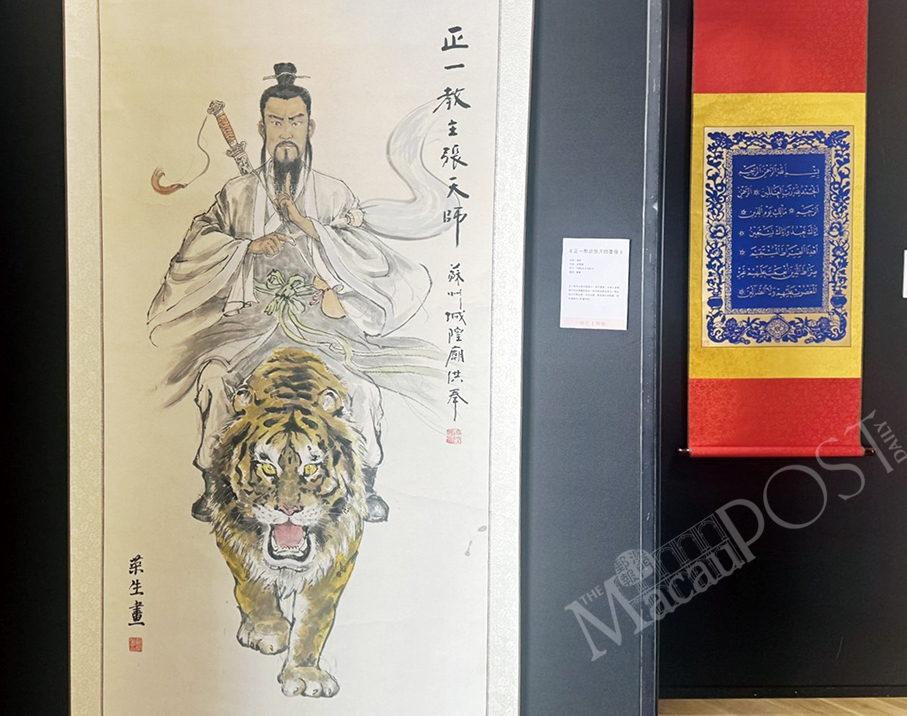 A ‘Word Religion Day’ art exhibition themed ‘Silent Radiance of Unity – Macao in Harmony’ displays a Chinese painting on Saturday at the School of the Nations in Taipa. – Photos: Ida Cheong
