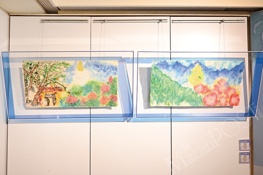 Organised by the Macau Youth Art Association and having recently kicked off, the exhibition showcases a total of 32 watercolours of various sizes presented throughout the exhibition venue located on the gallery’s basement level, with many featuring vibrant colours. Visitors to the gallery will find quiet moments of nature and greens among the over 30 works on show. Moreover, aside from Liang’s paintings are mixed media pieces designed with colourful floral themes.