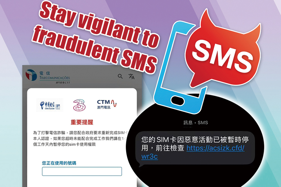 The Macao Post and Telecommunications Bureau (CTT) urged residents in a statement yesterday to remain vigilant after receiving reports of fraudulent SMS messages impersonating the bureau and attempting to obtain personal information.