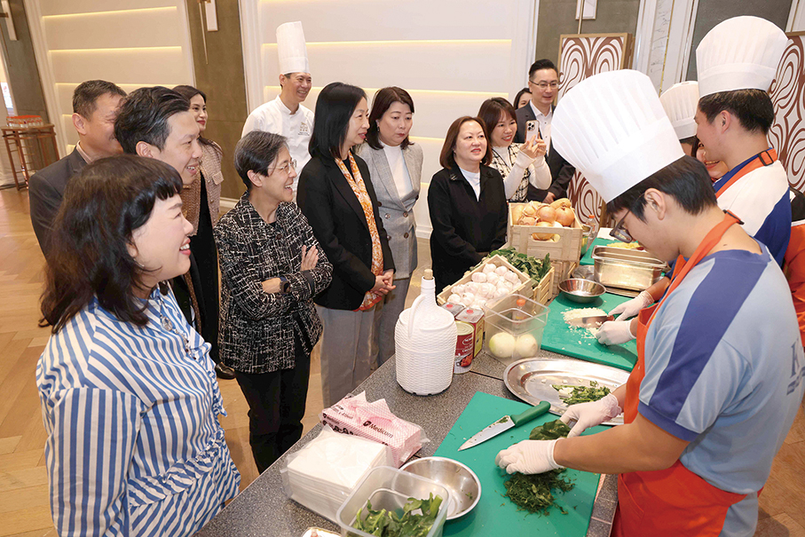 This handout photo provided by MGM yesterday shows participants demonstrating what they had learned by preparing several authentic dishes for guests during the graduation ceremony of “MGM Traditional Macanese Cuisine Programme” at MGM COTAI last Saturday.