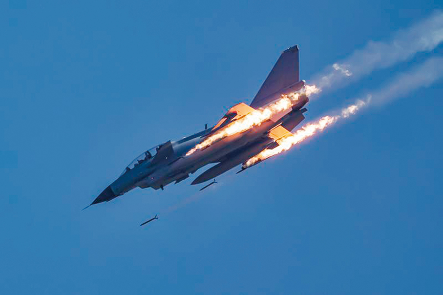 A fighter jet launches a ground attack during a training session conducted by an aviation brigade of the Chinese People’s Liberation Army (PLA) Air Force on June 22, 2025. – Xinhua