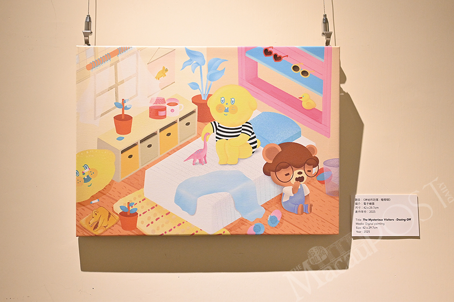 A collaborative exhibition titled “The Mysterious Visitor” is taking place on the first-floor exhibition room of the 10 Fantasia gallery, showcasing the characters created by local illustrators Aurelio Lewis (aka Oreo) and Joy Choi (蔡容容), who is also a graphic designer.