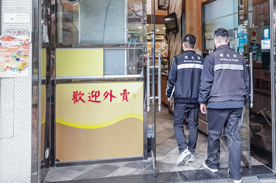 This undated handout photo released by the Health Bureau (SSM) yesterday shows its anti-smoking and anti-alcohol staff entering a restaurant for inspection.
