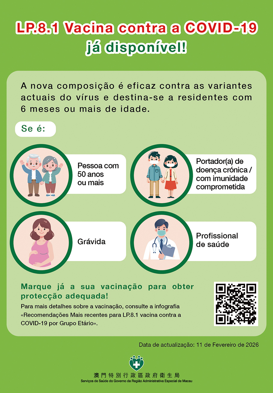 This poster in Portuguese released by the Health Bureau (SSM) yesterday promotes its new COVID-19 LP.8.1 vaccinations.