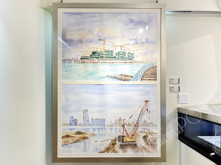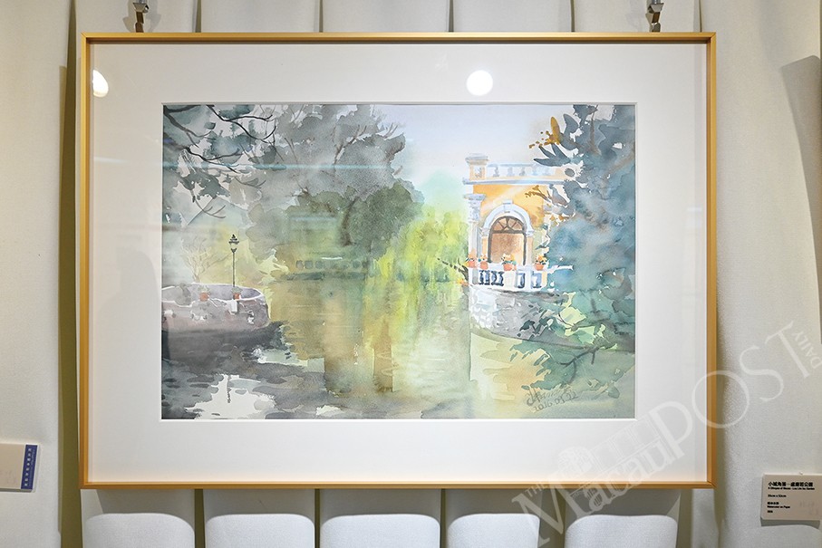 Passionate about drawing from a young age, Tou studied the art of watercolour under the mentorship of renowned local artist Dor Lio Hak Man while she was in high school, according to information displayed at the gallery, developing a “deep affinity” for watercolour landscapes, sketching, and acrylic painting. Macau’s cityscapes, landscapes found while travelling and scenes of daily life are the main inspirations behind her works, according to the statement.
