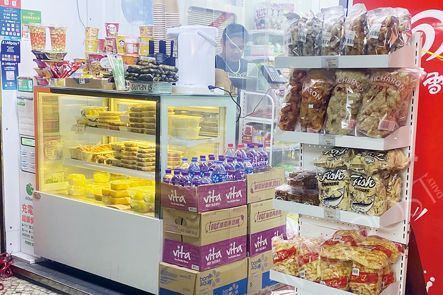 Food is displayed at the entrance of a convenience store on Rua dos Mercadores last night. – Photo: Khalel Vallo
