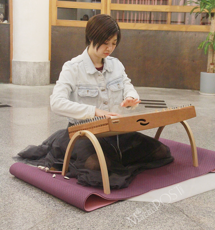 Miss Alice (劉小伶) plays the monochord “Embracing Inner Peace” piece at the centre in Nape on Saturday. – Photos: Khalel Vallo