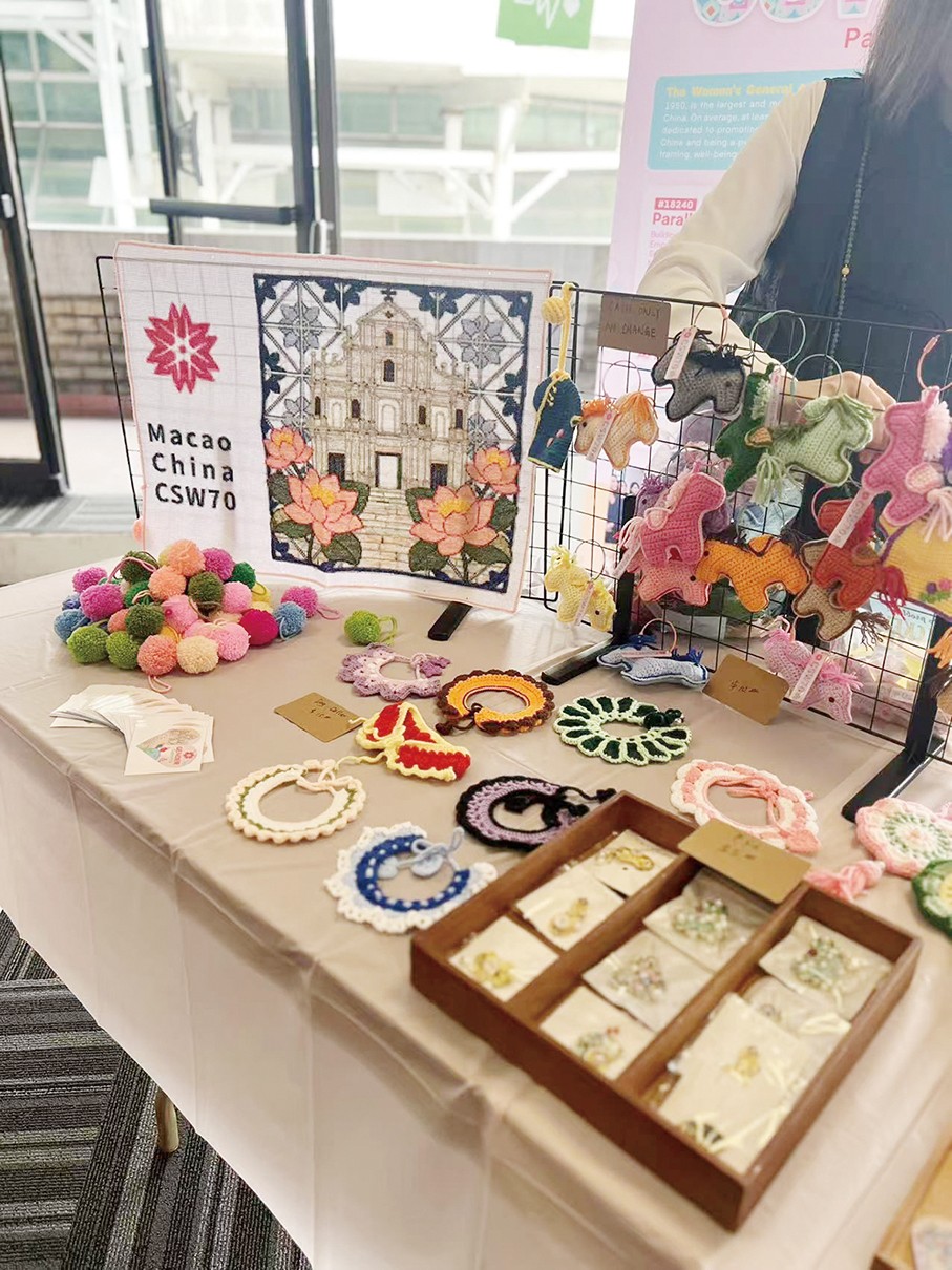 In addition to the formal sessions, the team hosted a booth themed “Traditional Chinese Culture”. It showcased crochet handicrafts made by Macau volunteers, including pet collars and cheongsam-style (旗袍) keyrings.