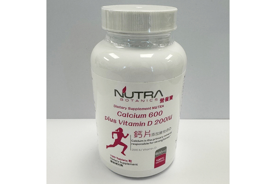 This undated handout photo provided by the Pharmaceutical Administration Bureau (ISAF) yesterday shows the “DIETARY SUPPLEMENT NUTRA CALCIUM 600 PLUS VITAMIN D 200 IU” (batch number 51194).