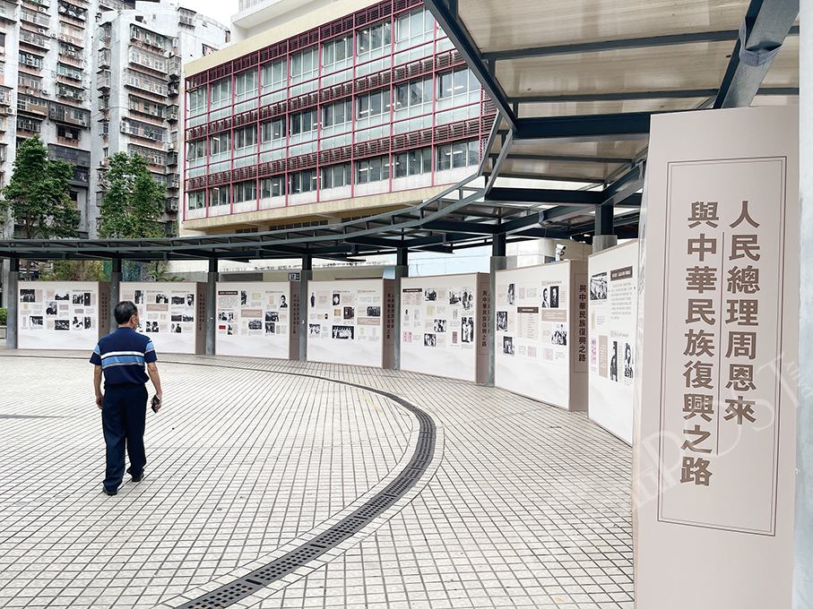 A passer-by is looking at the open-air exhibition about Zhou Enlai, the first premier of the PRC, in Iao Hon Park yesterday. – Photos: Armindo