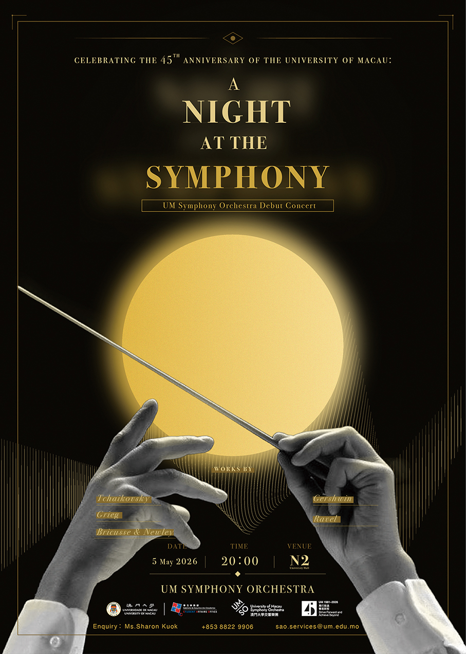 The concert also serves to celebrate the 45th anniversary of the University of Macau. Admission to the concert is free. The concert will take place on May 5 at 8 p.m. at the University Hall (N2) on the UM campus. For tickets, email sao.services@um.edu.mo.