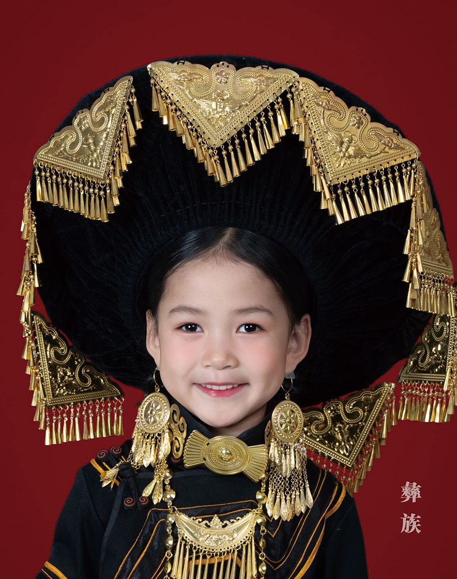 A young model showcases the ornate gold headwear and jewellery of the Yi people from Guizhou’s “Village T”. (file photo) – Photos provided by the District Development Centre