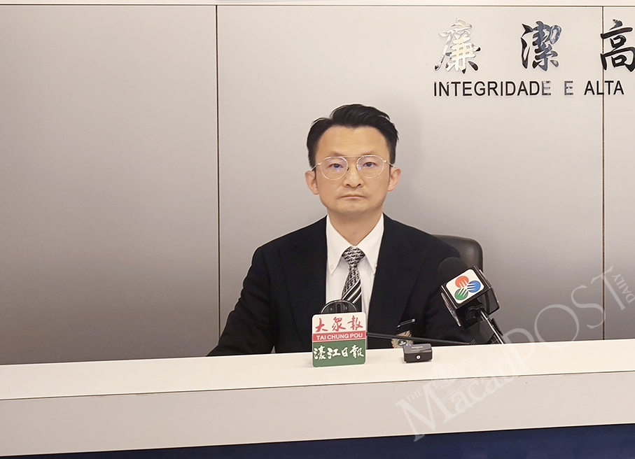 PJ spokesman Lei Chi Hou looks on during yesterday’s regular press conference yesterday. – Photo: Tony Wong