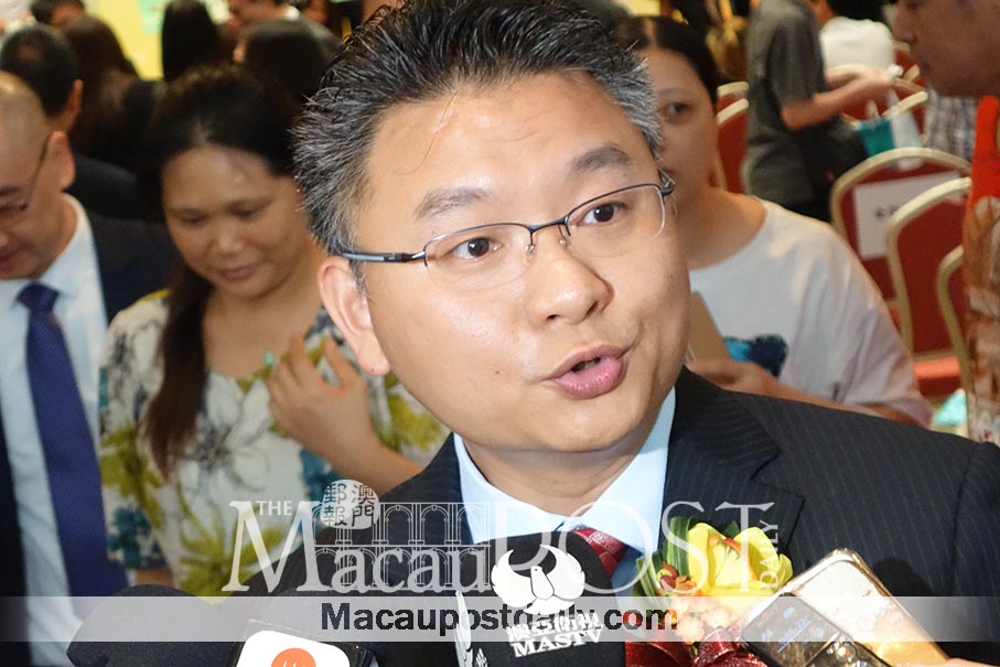 Labour Affairs Bureau (DSAL) Acting Director Chan Un Tong speaks to reporters on the sidelines of an award ceremony at the Macau Science Centre in Nape yesterday. Photo: Annie Cheung