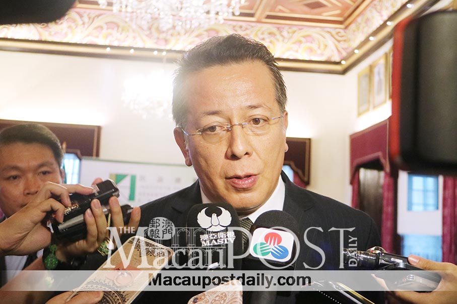 Civic and Municipal Affairs Bureau (IACM) President Jose Fonseca Tavares speaks to reporters yesterday on the sidelines of the bureau’s last meeting with representatives of the former live poultry sector, at the bureau’s headquarters in Avenida de Almeida Ribeiro. Photos: Debby Seng