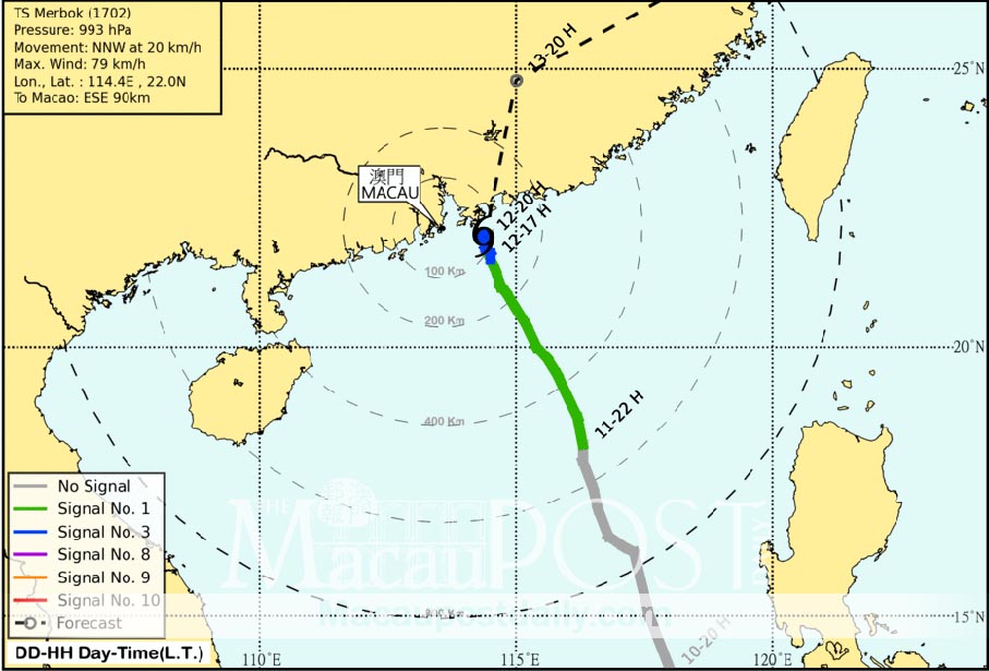 According to the bureau’s website, based on the current trajectory of the storm, the wind force is not expected to become stronger and the No. 3 typhoon signal will remain hoisted for a while.