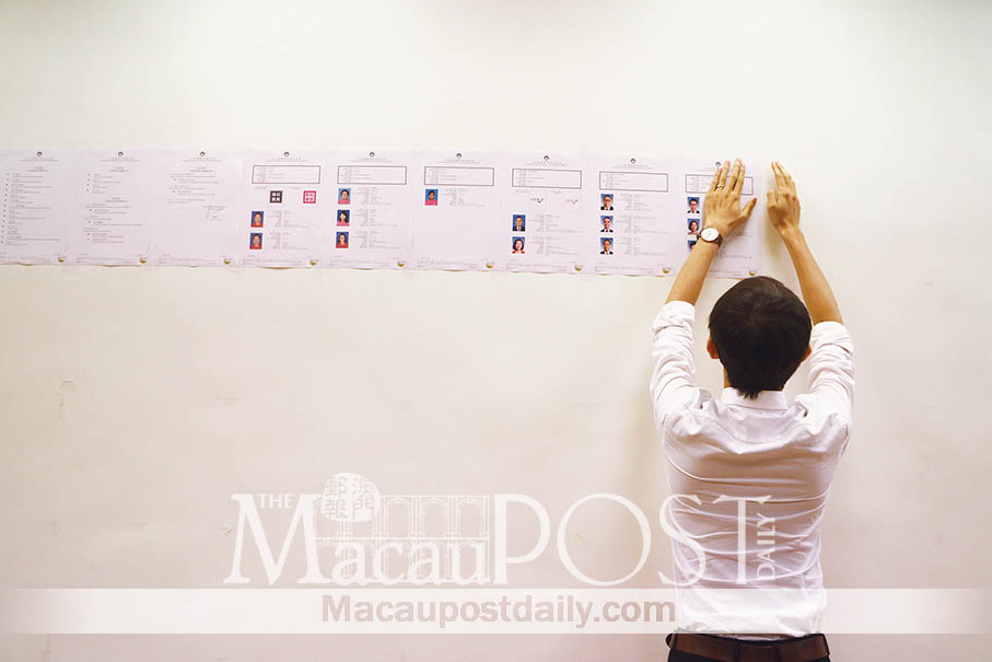 An official of the Public Administration and Civil Service Bureau (SAFP) posts amended information on all the 25 groups running in September’s direct and indirect elections at the Public Administration Building yesterday afternoon. Photo: Debby Seng