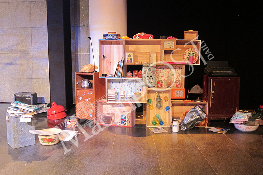 The set design of “Echoes of our Childhood” is displayed at .ART black box theatre at the CCM complex yesterday.