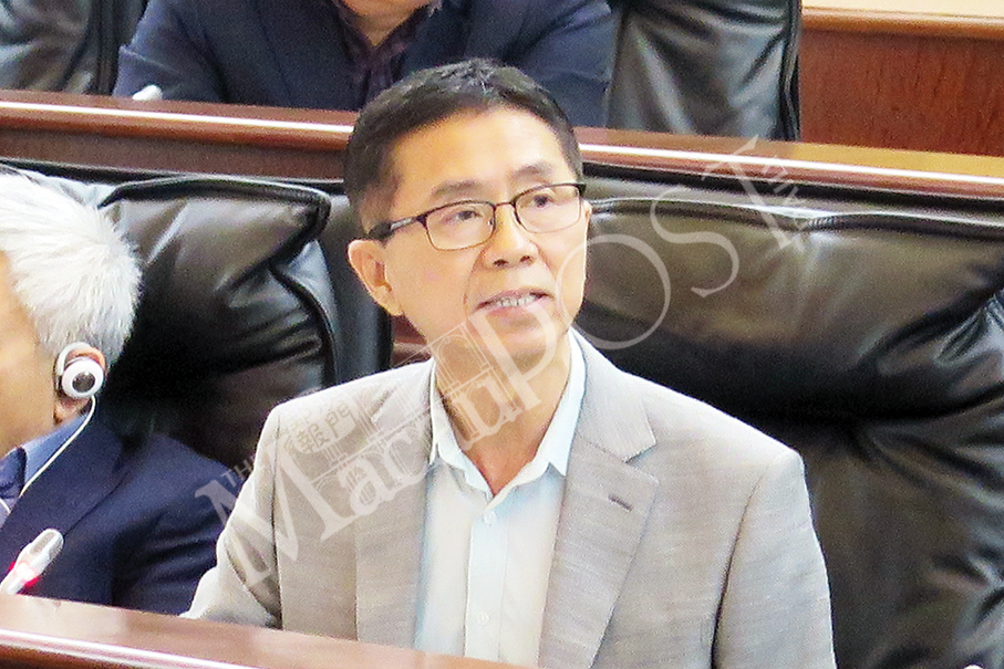 Secretary for Transport and Public Works Raimundo do Rosario (right) and Lands, Public Works and Transport Bureau (DSSOPT) Director Li Canfeng listen to lawmakers’ questions during yesterday’s plenary session in the legislature’s hemicycle. Photos: Tony Wong