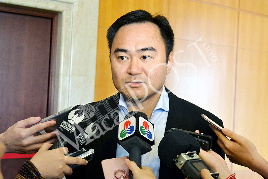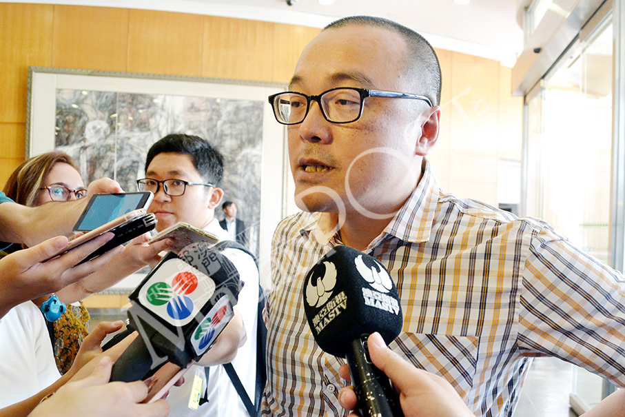 Lawmaker Gabriel Tong Io Cheng speaks to reporters in the legislative chamber yesterday. Photos: MPDG