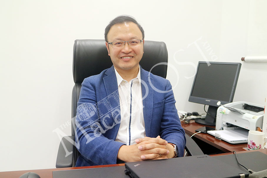Alfred Wong Seng Fat, assistant professor of the Department of Electromechanical Engineering of the University of Macau’s (UM) Faculty of Science and Technology (FST), poses yesterday at his office on the UM Hengqin campus. Photo: Debby Seng