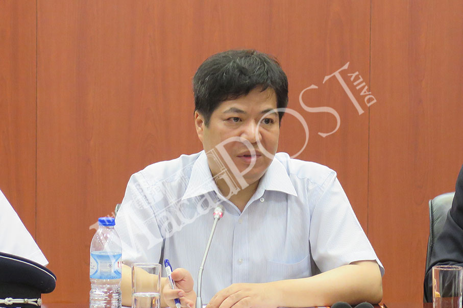 The then director of the Meteorological and Geophysical Bureau (SMG), Fong Soi Kun, speaks to reporters on Wednesday during a special press conference held by the government at the Secretariat for Security (GSS) in the S. Francisco Barracks about Typhoon Hato. He resigned the next morning. Photo: Tony Wong