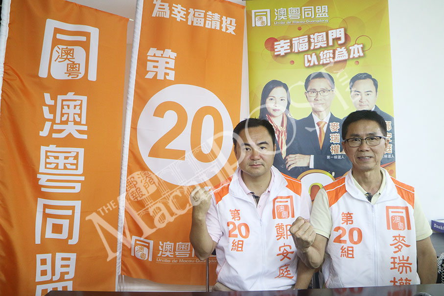 Mak, who has been a lawmaker since 2009, is the first-ranked candidate of the Macau-Guangdong Union (UMG) (No. 20), while Zheng, a one-term legislator and businessman, is the second-ranked candidate. Mak’s list comprises 13 candidates.