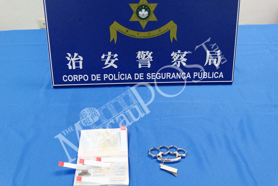 According to the spokesperson, the police identified the suspect as an Indonesian national in his forties surnamed Vernjo. He was found carrying a knuckleduster in his suitcase when he arrived at the airport in Taipa.