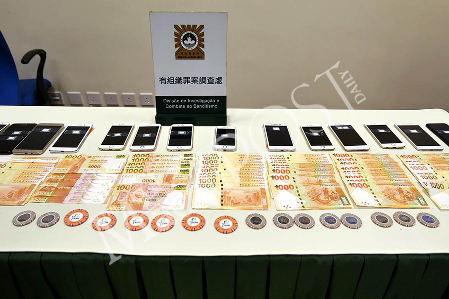 This undated handout photo provided by the Judiciary Police (PJ) yesterday shows the cash, gaming chips and other pieces of evidence seized from the casino loansharks.