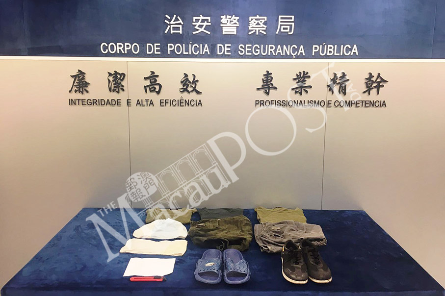 This undated handout photo provided by the Public Security Police (PSP) yesterday shows the exhibitionist’s clothing and other pieces of evidence.
