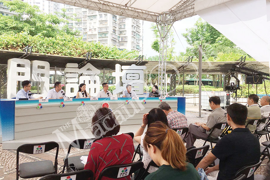 Guest speakers and audience members attend TDM’s Macau Forum in Areia Preta Park yesterday. Photo: MPDG
