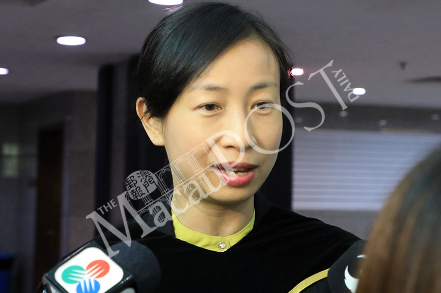 Institute for Tourism Studies (IFT) President Fanny Vong Chuk Kwan speaks to reporters at Tap Seac Multisport Pavilion yesterday. Photo: MPDG