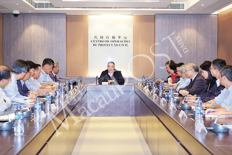 Chief Executive Fernando Chui Sai On arrived at the Civil Protection Operations Centre shortly before 10 a.m. and held a meeting with senior officials to oversee the government’s typhoon response measures, the Chief Executive Office (GCE) said in a statement yesterday.