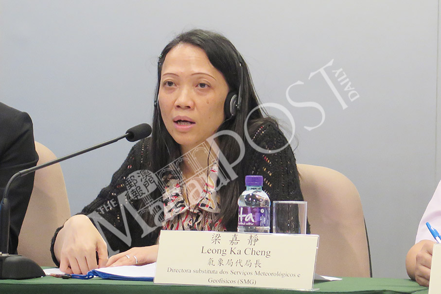 Meteorological and Geophysical Bureau (SMG) Vice Director Leong Ka Cheng speaks to the media in late August during a press conference about the government’s Hato disaster relief measures, at the Government Information Bureau (GCS) in Nam Van. She was the bureau’s acting director at that time. Photos: Tony Wong