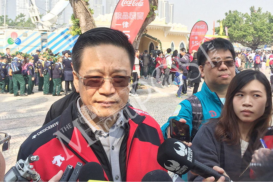Public Prosecutor-General Ip Son Sang speaks to the media at Barra yesterday, after taking part in the annual “Walk for a Million” charity event. Photo: Tony Wong