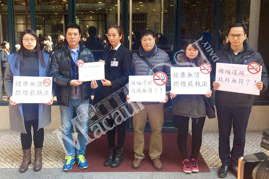 Several Wynn Macau casino workers, accompanied by lawmakers-cum-unionists Ella Lei Cheng I and Leong Sun Iok as well as members of the Macau Gaming Enterprises Staff Association (MGESA), yesterday petitioned Chief Executive Fernando Chui Sai On, urging the government to ensure that gaming operators always strictly obey the anti-smoking law and, consequently, always ensure that gamblers do not smoke in no-smoking areas on their premises.
